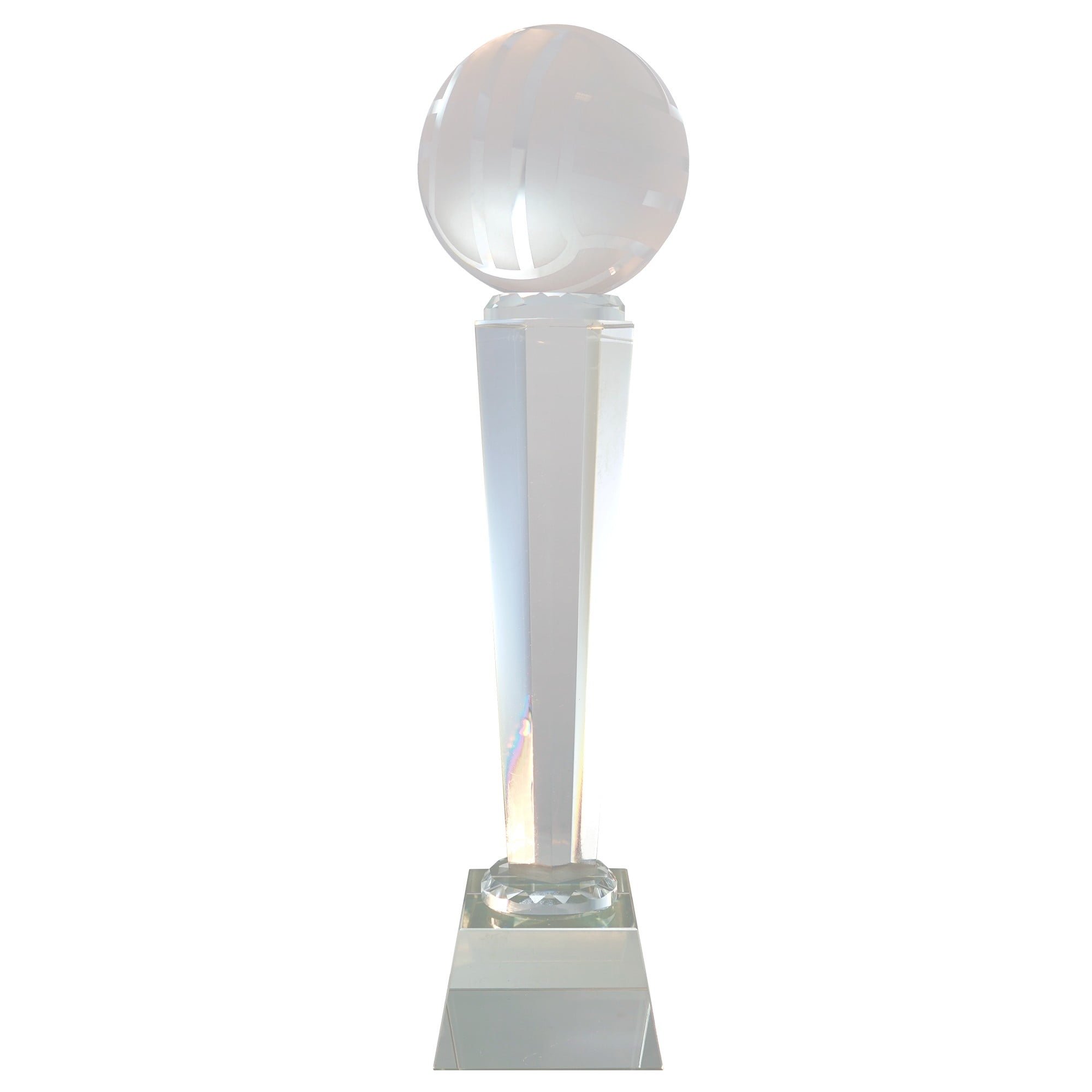 Eksklusivt glasstrofé med en volleyball på toppen.