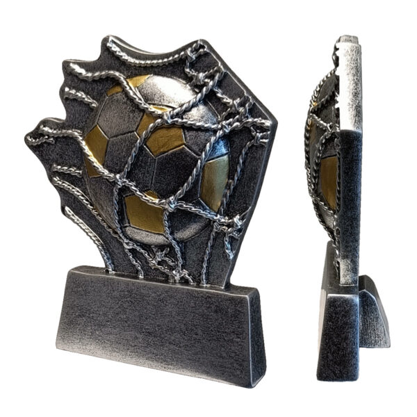 Denne håndmalte resinstatuetten med fotballmotiv er et rimelig og flott valg for å hedre spillere. Statuetten har plass til skilt eller etikett på sokkelen, slik at du kan tilpasse den med klubblogo eller annet. Statuettens mål er 9,5 x 8 x 2,9 cm